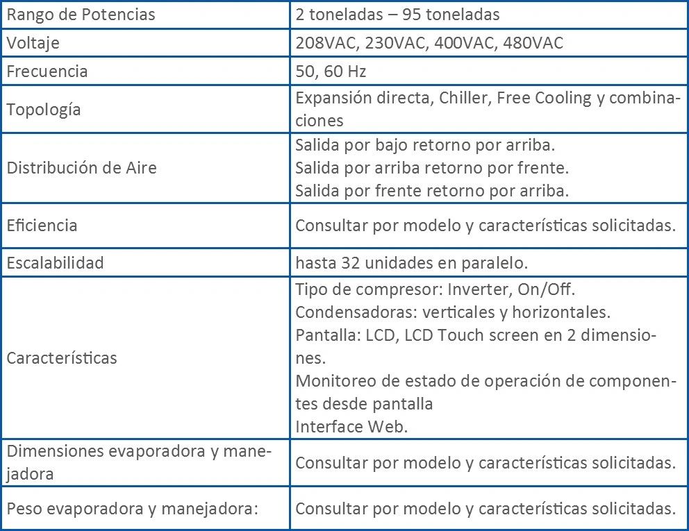 Las unidades de Aire Acondicionado de Precisión Hiref son equipos ideales para Centros de Datos, Cuartos de comunicaciones, Core de comunicaciones, entre otros. Los equipos diseñados por HirRef, mantienen la temperatura y humedad adecuada de acuerdo a la carga térmica existente. El tamaño de los equipos es lo más reducido posible sin sacrificar capacidad. Son unidades de alta eficiencia energética. El acceso para mantenimiento de las unidades es totalmente por la parte frontal.